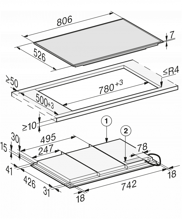| Rozměry výřezu v mm (šířka) při instalaci bez rámu | 780 |