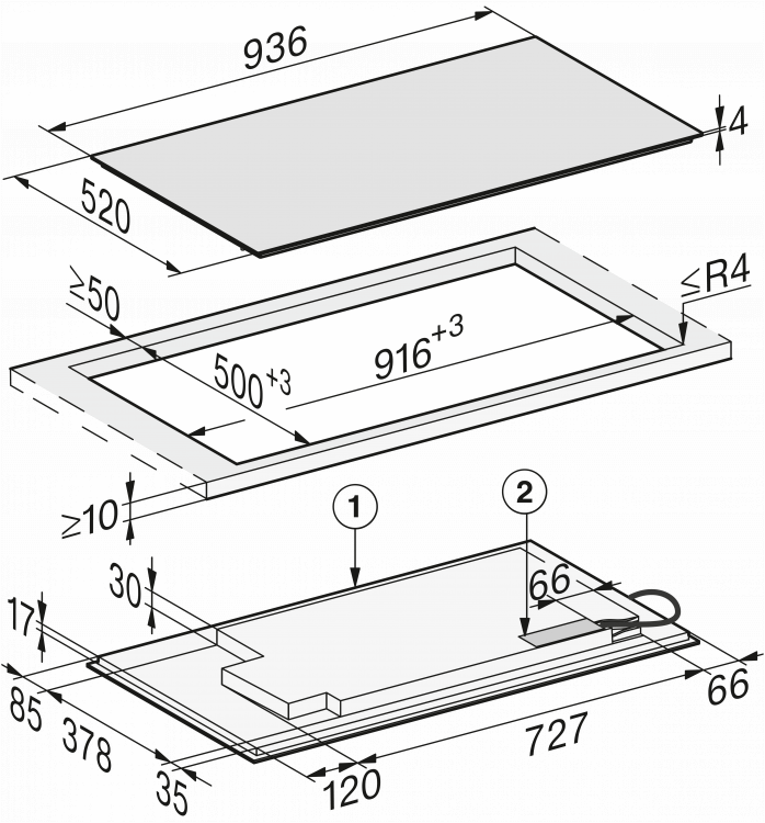 | Vnitřní rozměr výřezu v mm (šířka) při instalaci se zapuštěním | 916 |