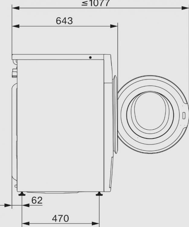 Hloubka přístroje s otevřenými dvířky v mm 1077